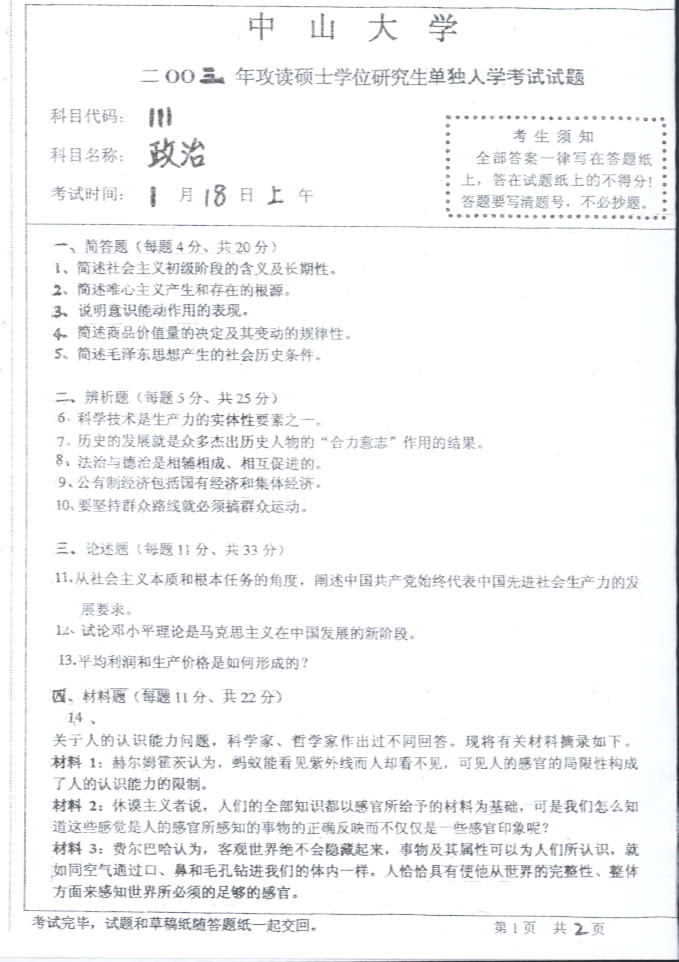 专业课考研经验 本站小编 FreeKaoyan 2018-01-22中山大学2003年考研真题-马克思主义理论