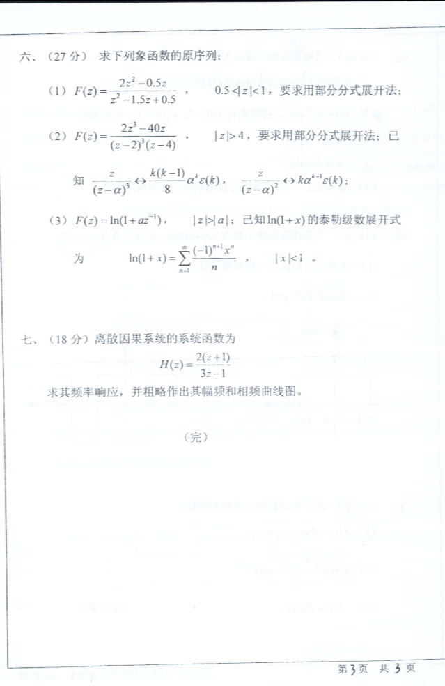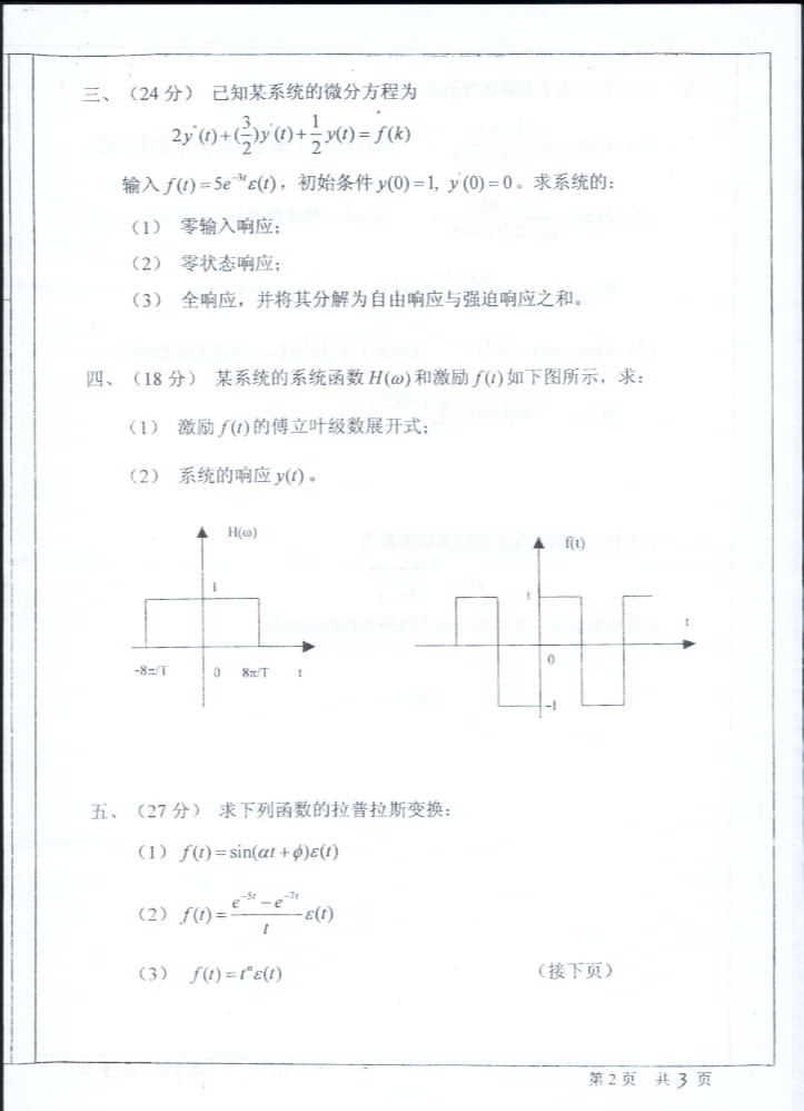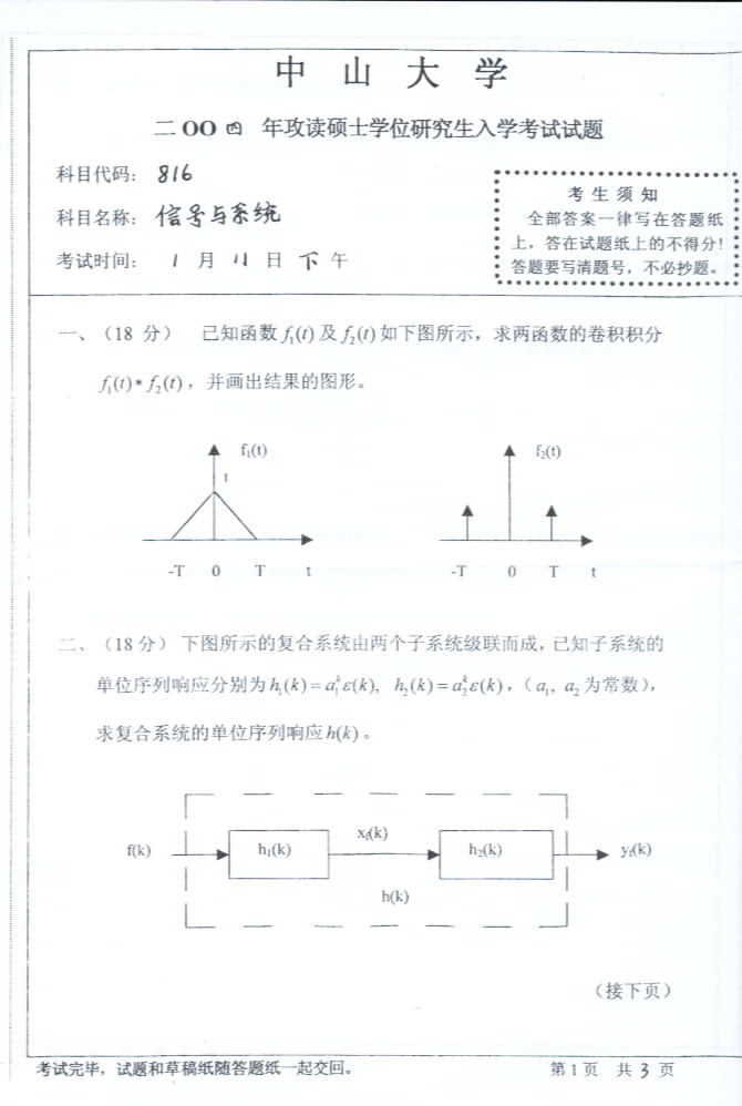 中山大学2004年考研真题-信号与系统