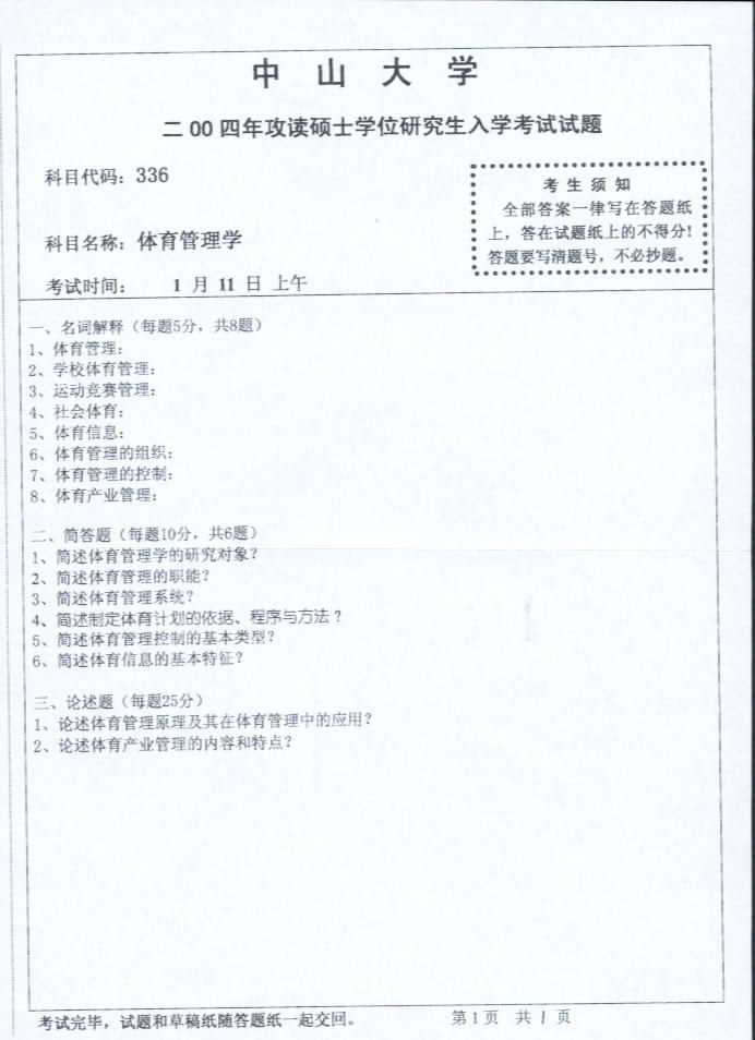 相关话题/考研真题 中山大学 管理学 体育