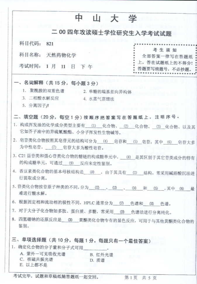 专业课考研经验 本站小编 FreeKaoyan 2018-01-22中山大学2003年考研真题-有机化学二