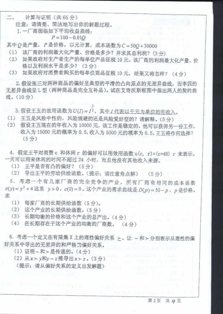 专业课考研经验 本站小编 FreeKaoyan 2018-01-22中山大学2004年考研真题-微观经济学与财务原理