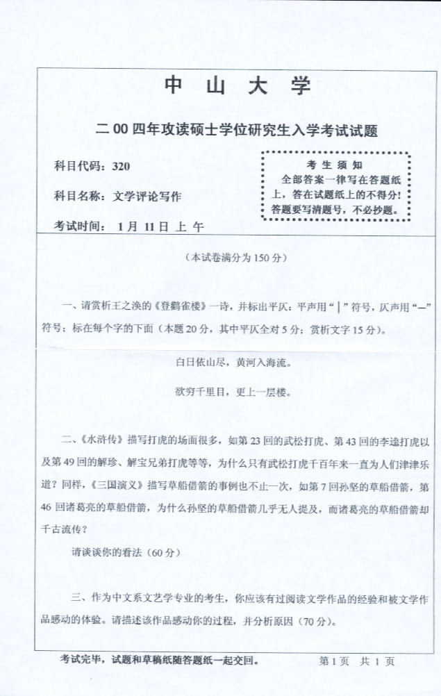 专业课考研经验 本站小编 FreeKaoyan 2018-01-22中山大学2004年考研真题-卫生综合