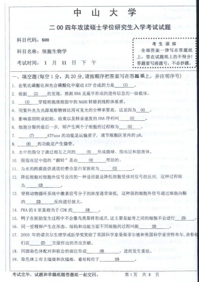 专业课考研经验 本站小编 FreeKaoyan 2018-01-22中山大学2004年考研真题-卫生综合