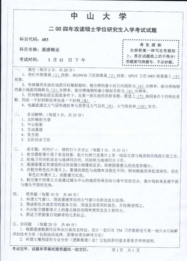 专业课考研经验 本站小编 FreeKaoyan 2018-01-22中山大学2004年考研真题-污染气象学