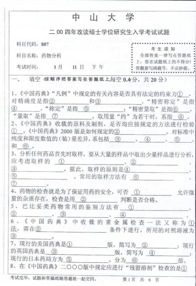 专业课考研经验 本站小编 FreeKaoyan 2018-01-22中山大学2004年考研真题-卫生综合