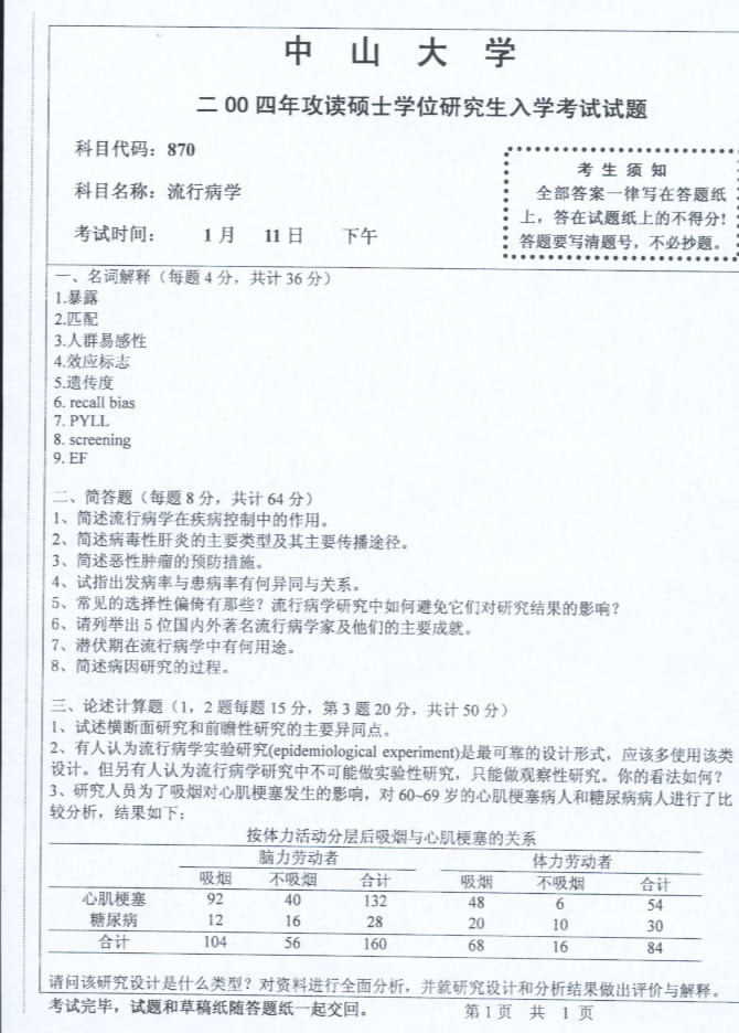 相关话题/中山大学 考研真题 流行病学