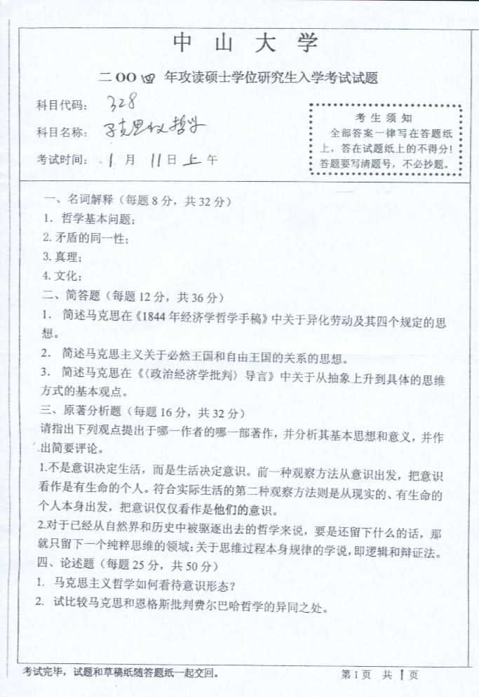 专业课考研经验 本站小编 FreeKaoyan 2018-01-22中山大学2004年考研真题-马克思主义道德论
