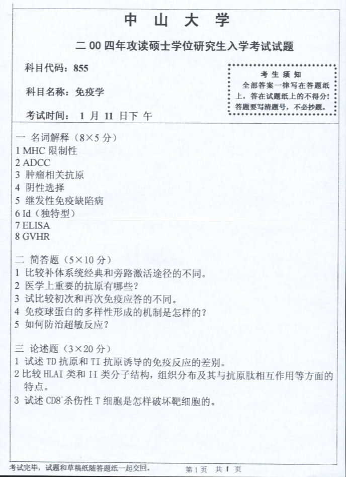 专业课考研经验 本站小编 FreeKaoyan 2018-01-22中山大学2004年考研真题-口腔综合