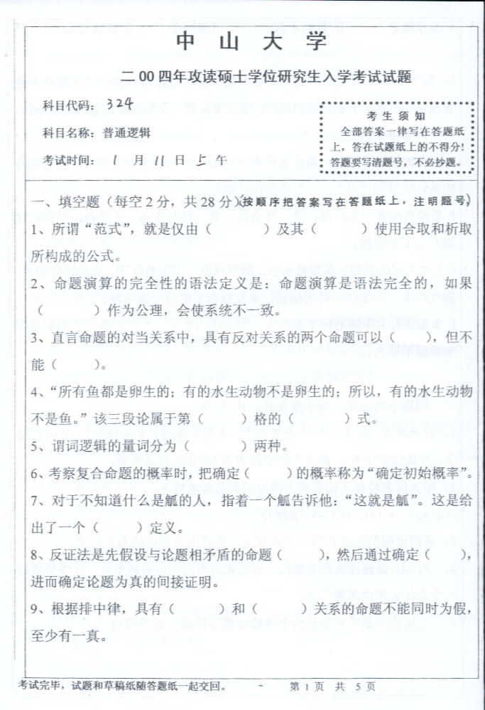 专业课考研经验 本站小编 FreeKaoyan 2018-01-22中山大学2004年考研真题-离散数学