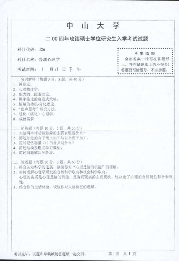 专业课考研经验 本站小编 FreeKaoyan 2018-01-22中山大学2004年考研真题-普通化学