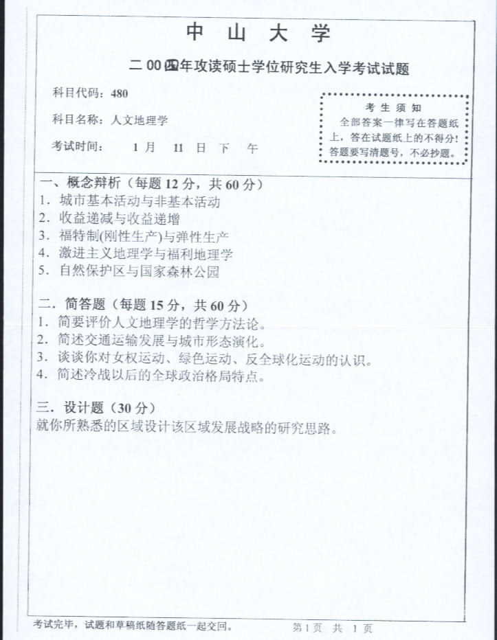 相关话题/中山大学 考研真题 人文地理学