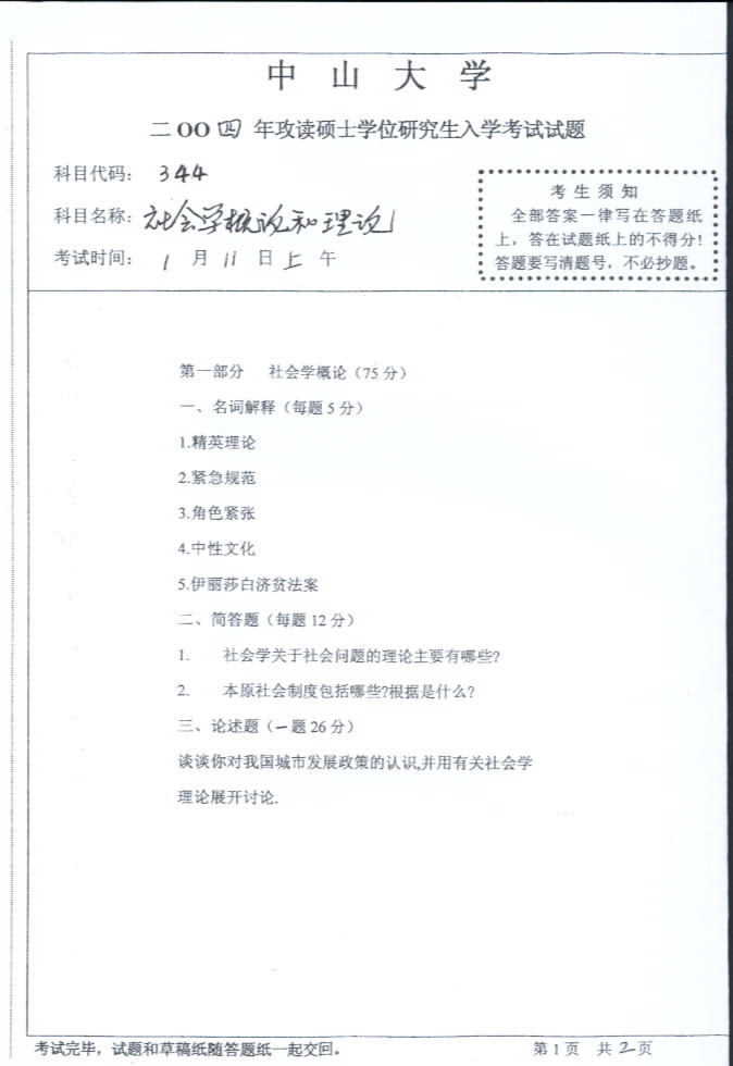 相关话题/社会学 考研真题 中山大学 概论 理论