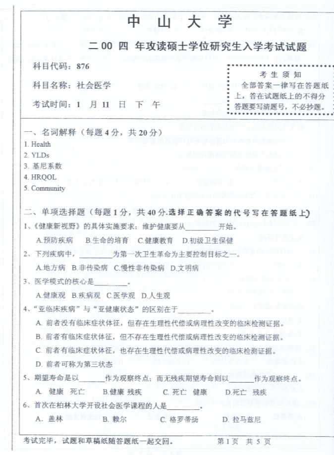 专业课考研经验 本站小编 FreeKaoyan 2018-01-22中山大学2004年考研真题-人口统计学
