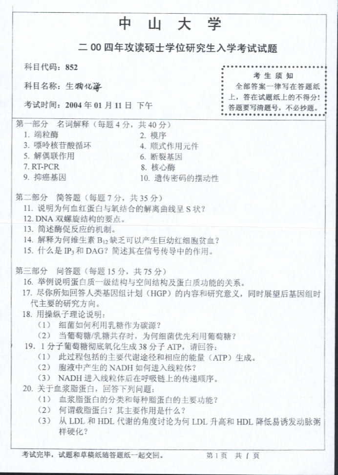 专业课考研经验 本站小编 FreeKaoyan 2018-01-22中山大学2004年考研真题-生物化学二