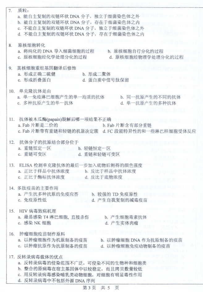 专业课考研经验 本站小编 FreeKaoyan 2018-01-22中山大学2004年考研真题-生物化学二