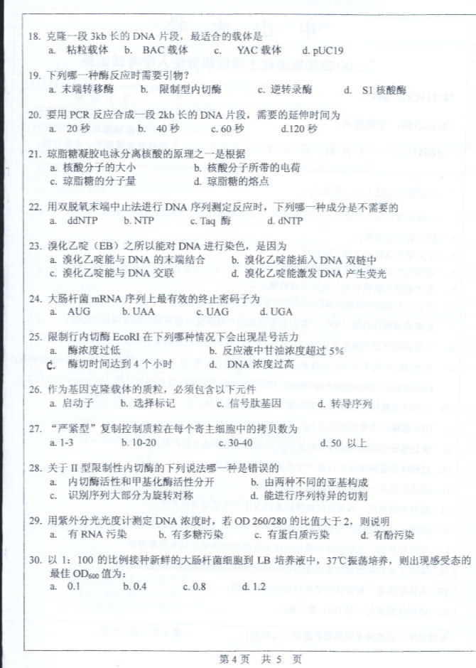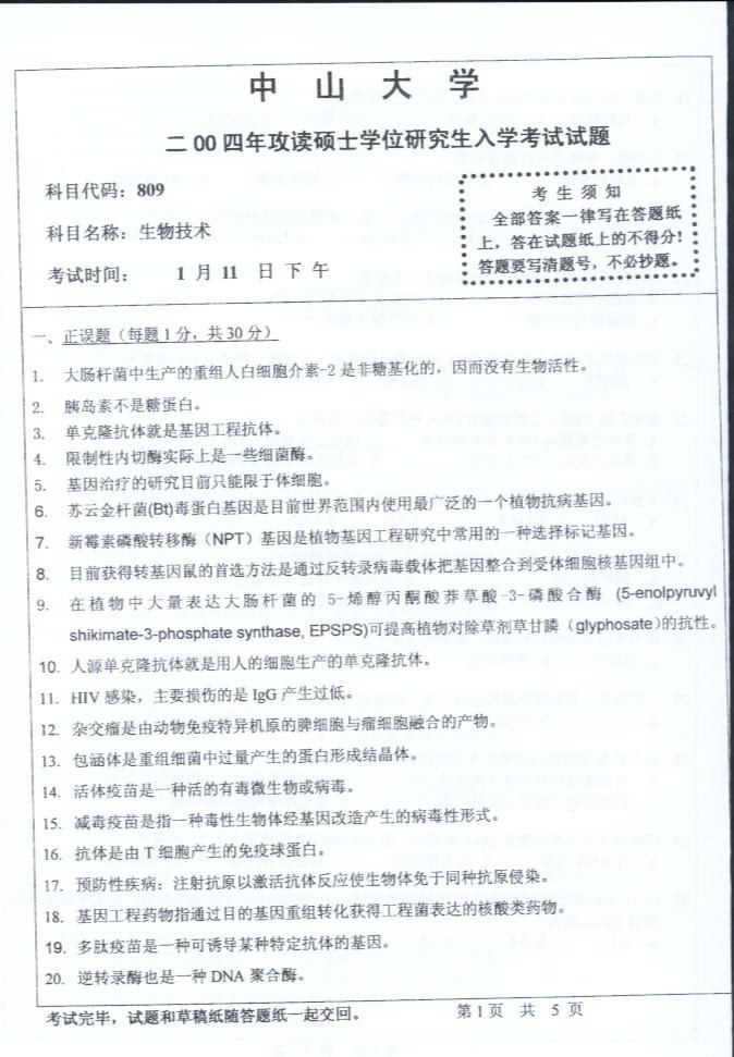 专业课考研经验 本站小编 FreeKaoyan 2018-01-22中山大学2004年考研真题-生物化学