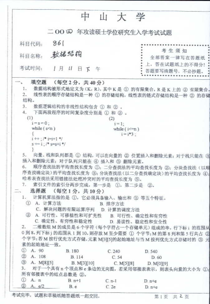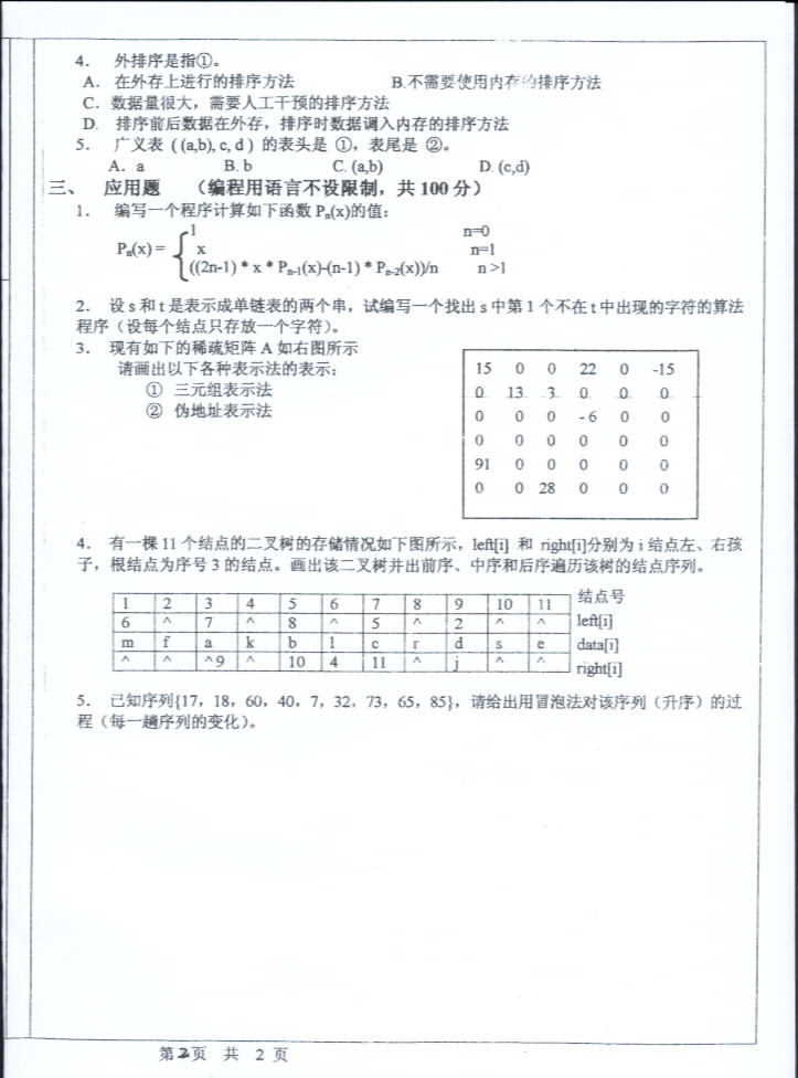 中山大学2004年考研真题-数据结构