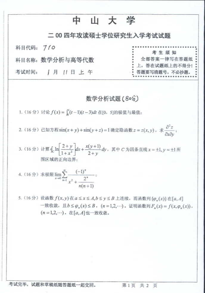 相关话题/考研真题 中山大学 高等代数 数学分析