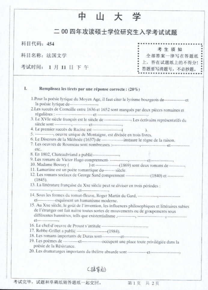 专业课考研经验 本站小编 FreeKaoyan 2018-01-22中山大学2004年考研真题-德语语言文学