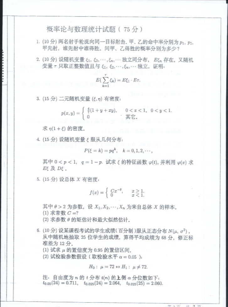 相关话题/考研真题 中山大学 专业基础 概率论与数理统计