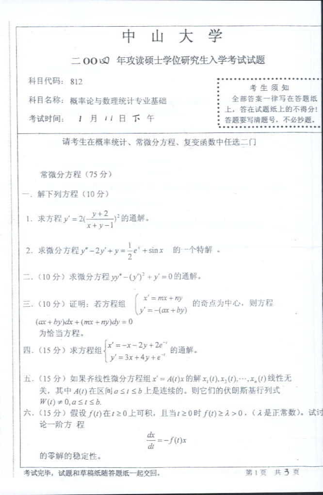 专业课考研经验 本站小编 FreeKaoyan 2018-01-22中山大学2004年考研真题-数学四