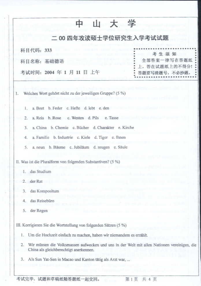 专业课考研经验 本站小编 FreeKaoyan 2018-01-22中山大学2004年考研真题-高等数学C
