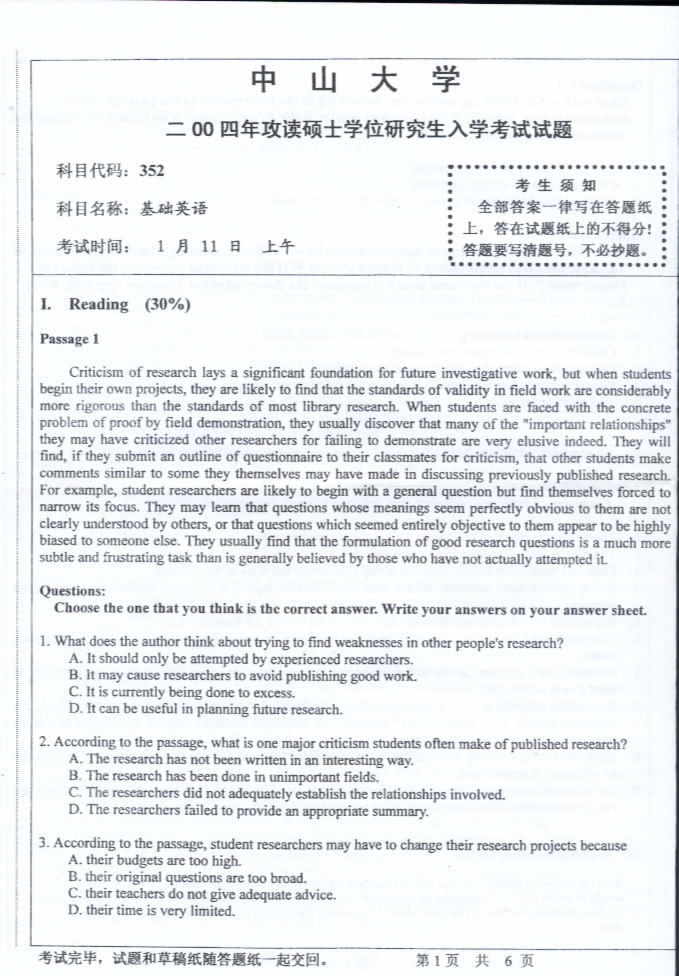 专业课考研经验 本站小编 FreeKaoyan 2018-01-22中山大学2004年考研真题-基础法语