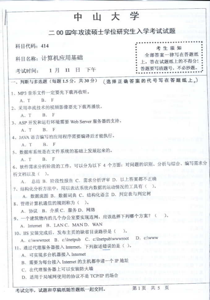 专业课考研经验 本站小编 FreeKaoyan 2018-01-22中山大学2004年考研真题-计算机程序语言设计