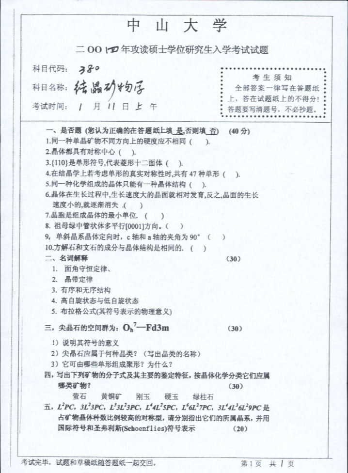 专业课考研经验 本站小编 FreeKaoyan 2018-01-22中山大学2004年考研真题-基础数学综合考试
