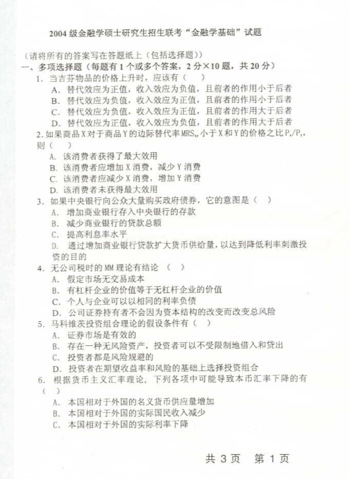 专业课考研经验 本站小编 FreeKaoyan 2018-01-22中山大学2004年考研真题-基础数学综合考试