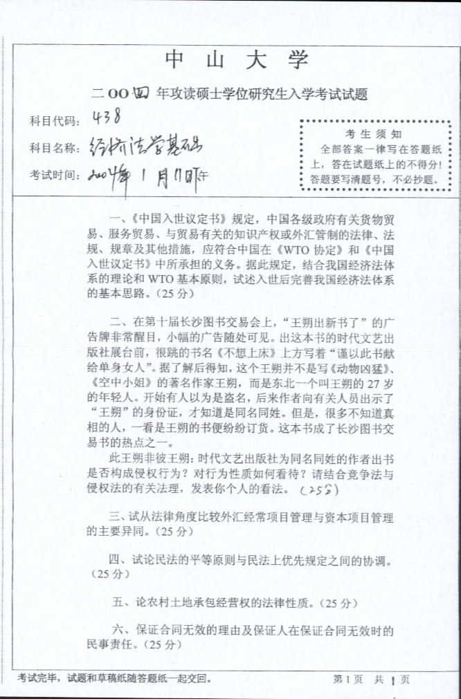 专业课考研经验 本站小编 FreeKaoyan 2018-01-22中山大学2004年考研真题-基础数学综合考试