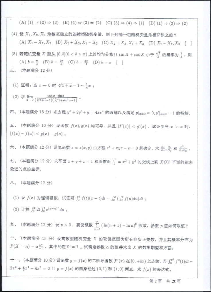 专业课考研经验 本站小编 FreeKaoyan 2018-01-22中山大学2004年考研真题-计算科学基础