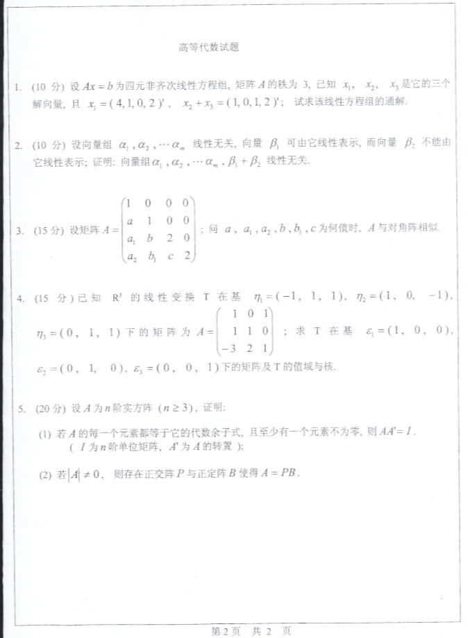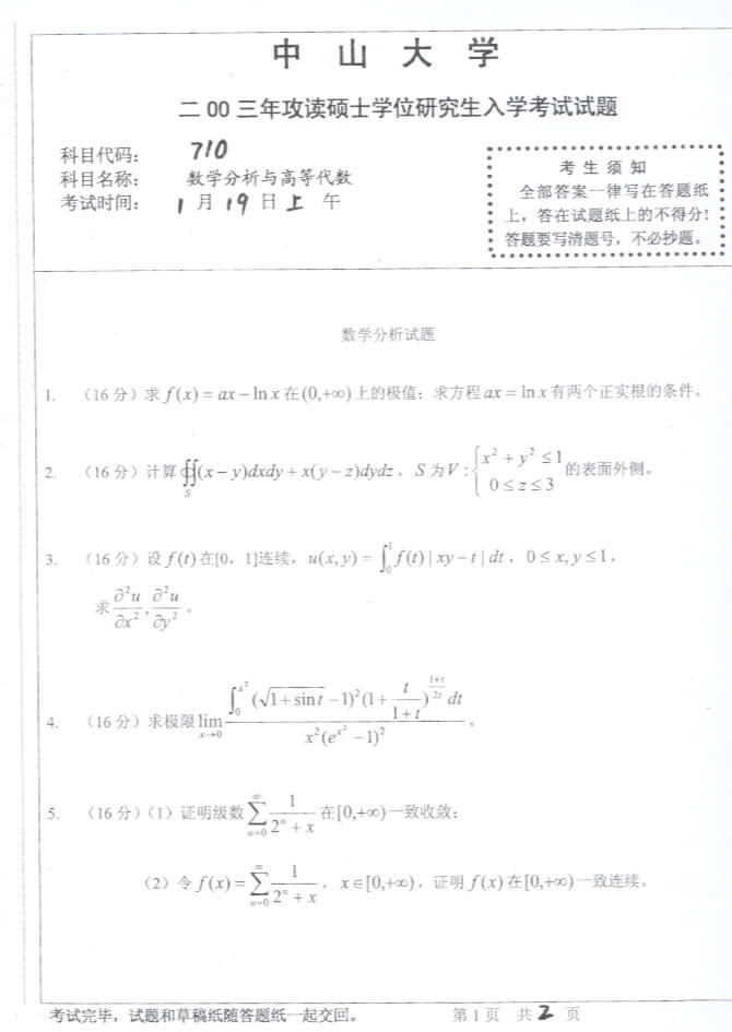 相关话题/考研真题 中山大学 高等代数 数学分析