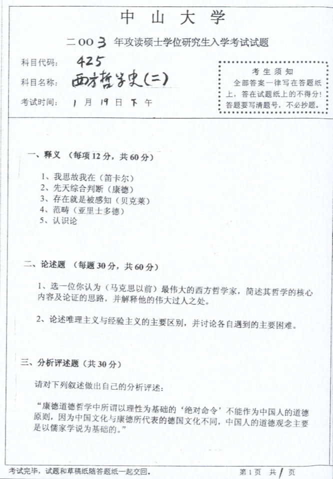 专业课考研经验 本站小编 FreeKaoyan 2018-01-22中山大学2003年考研真题-思想政治理论与方法