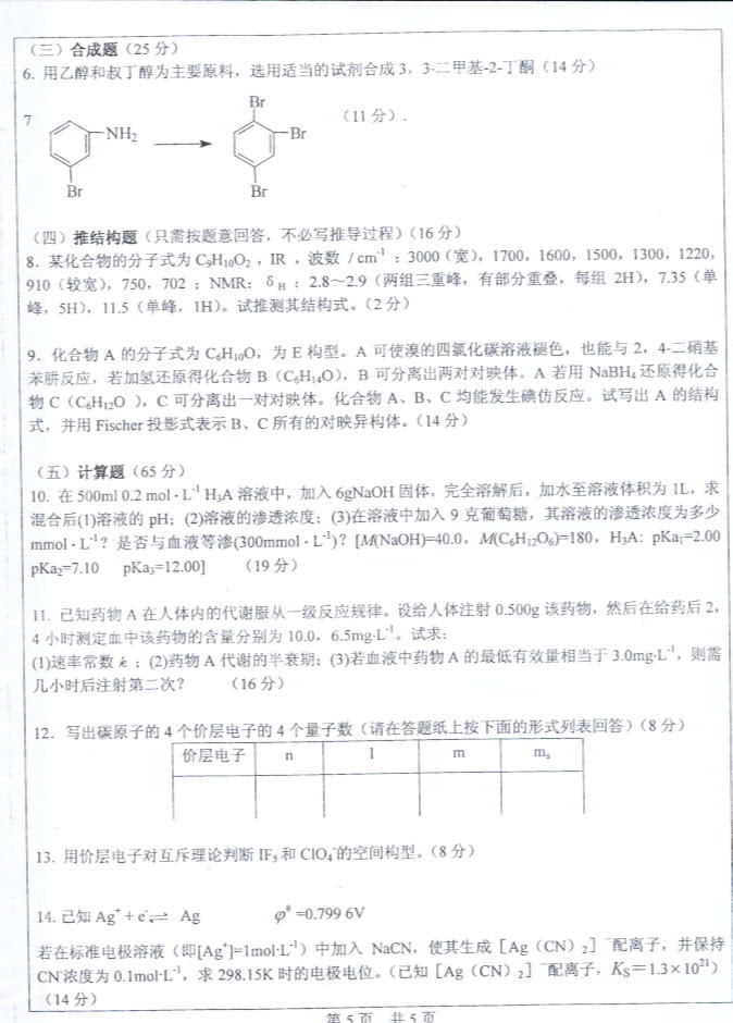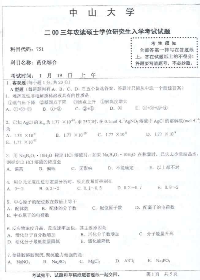 中山大学2003年考研真题-药化综合