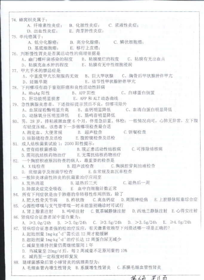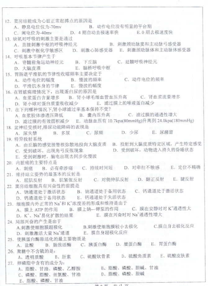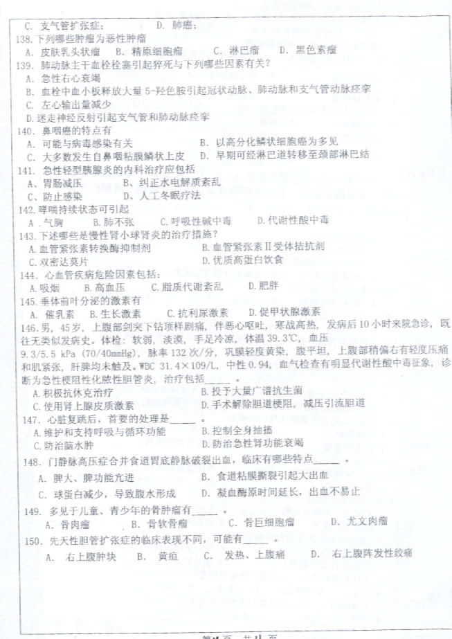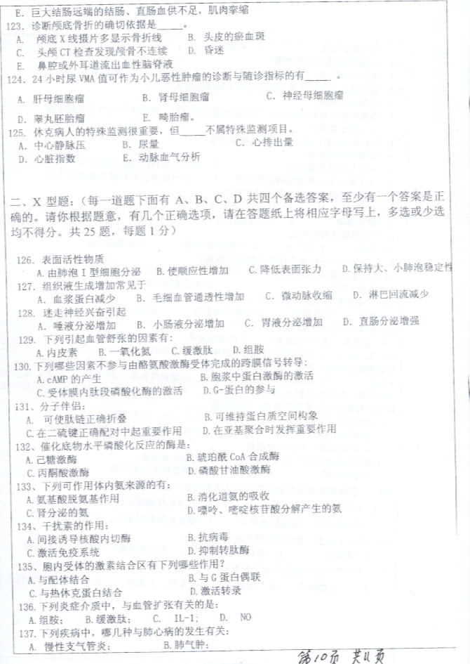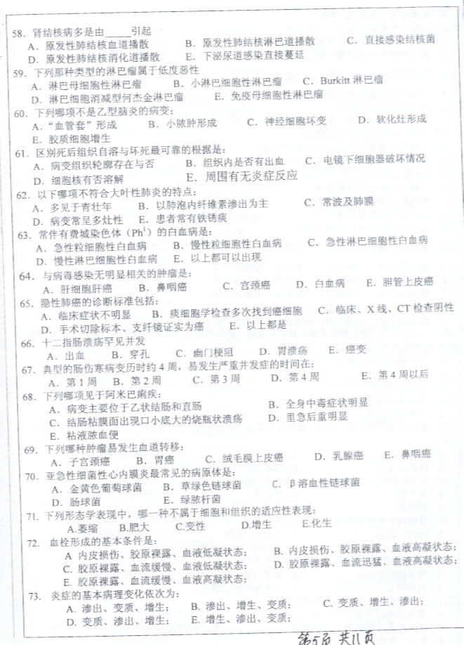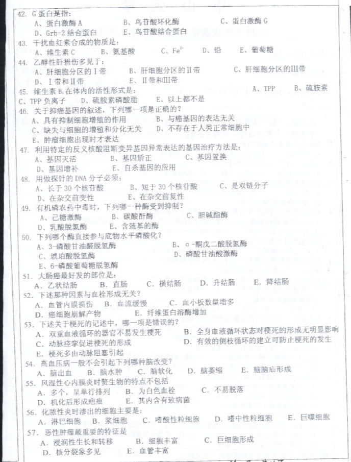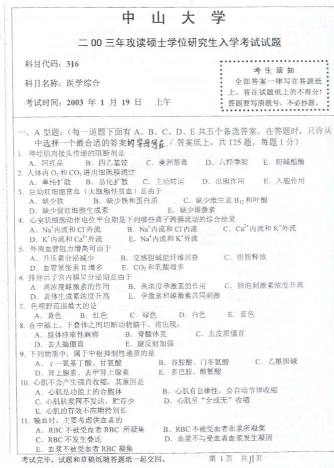 中山大学2003年考研真题-医学综合