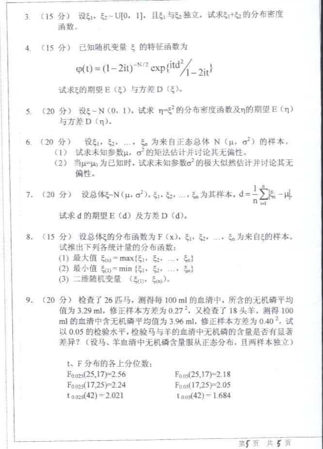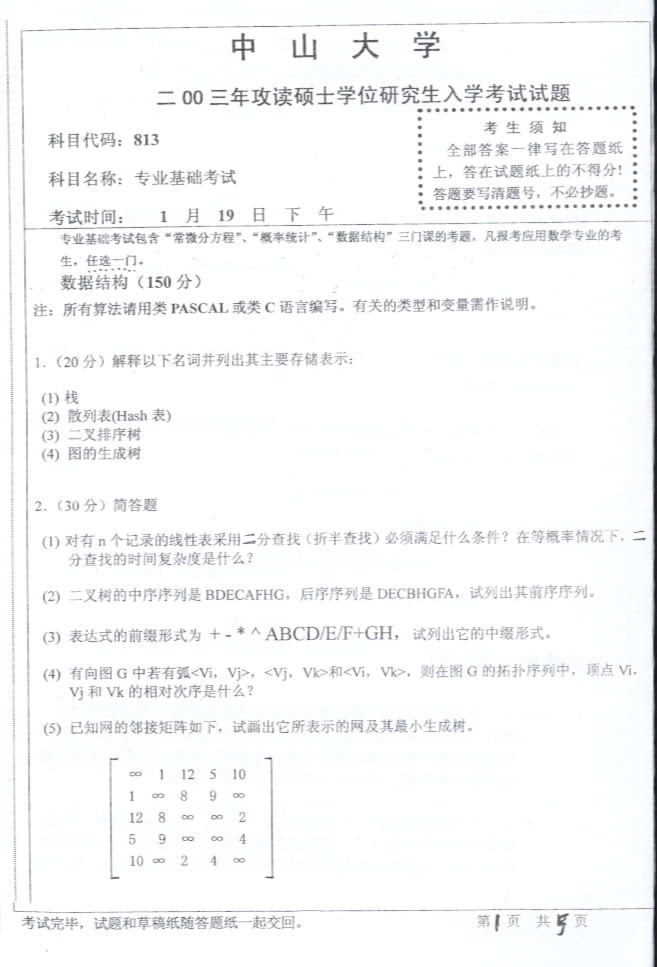 中山大学2003年考研真题-应用数学专业基础