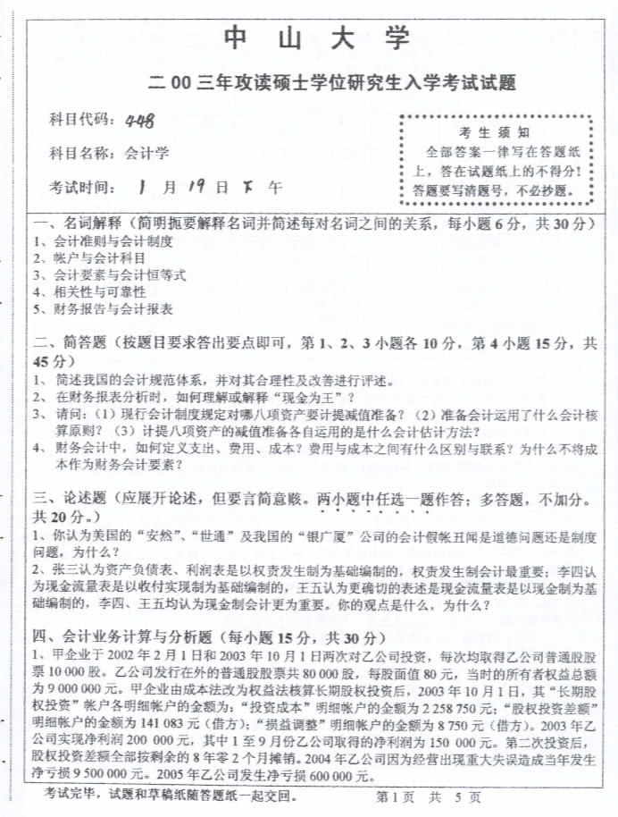 专业课考研经验 本站小编 FreeKaoyan 2018-01-22中山大学2003年考研真题-中文综合