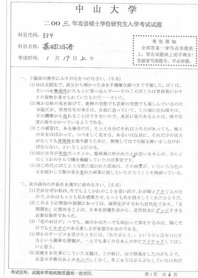 专业课考研经验 本站小编 FreeKaoyan 2018-01-22中山大学2003年考研真题-中文综合