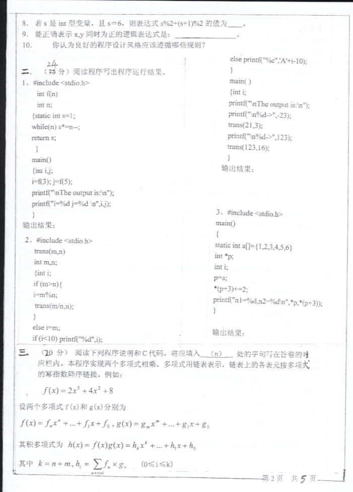 中山大学2003年考研真题-计算机程序语言设计