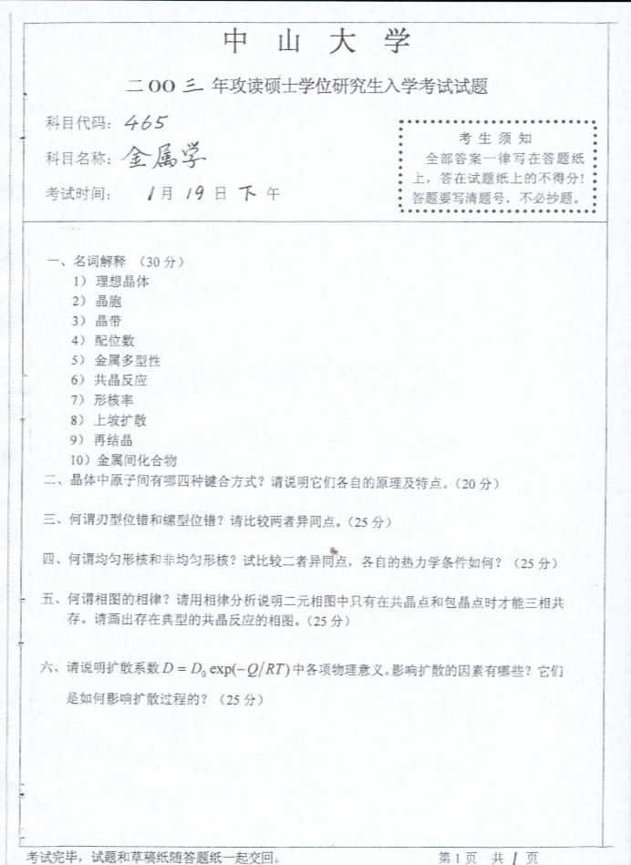 专业课考研经验 本站小编 FreeKaoyan 2018-01-22中山大学2003年考研真题-结晶矿物学