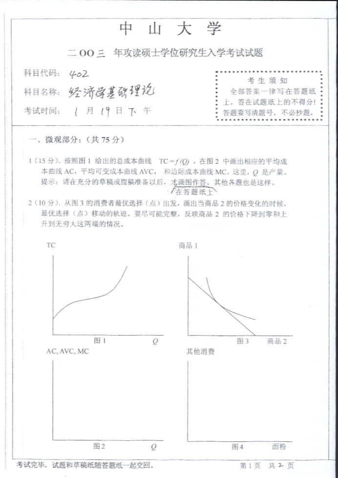 中山大学2003年考研真题-经济学基础理论