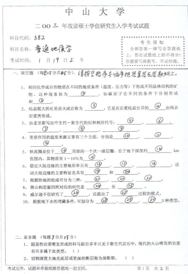 专业课考研经验 本站小编 FreeKaoyan 2018-01-22中山大学2003年考研真题-结晶矿物学