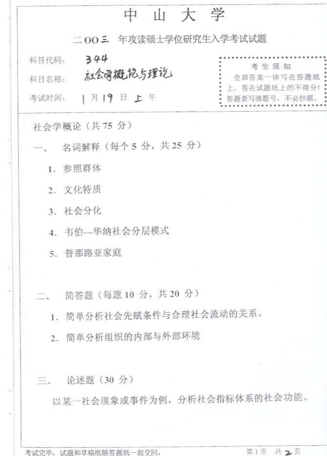 相关话题/社会学 考研真题 中山大学 概论 理论