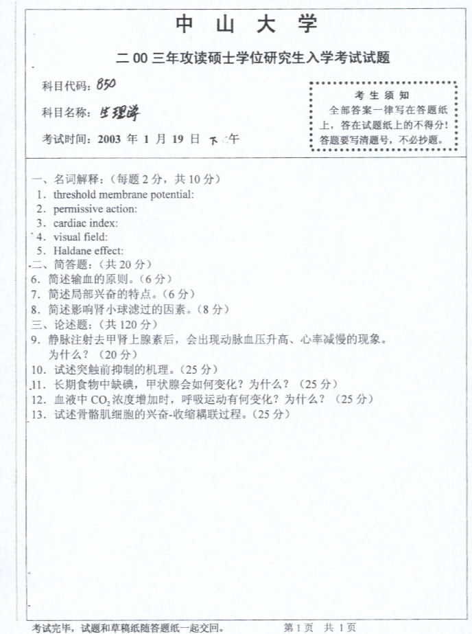 相关话题/中山大学 考研真题 生理学