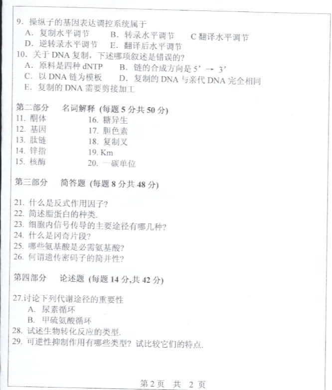 中山大学2003年考研真题-生物化学二