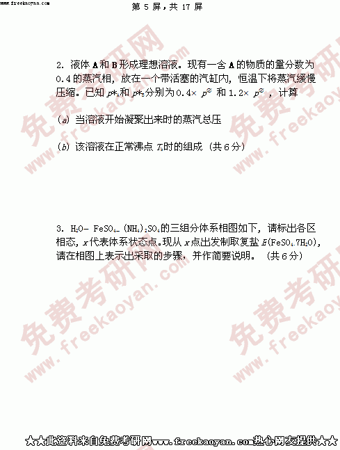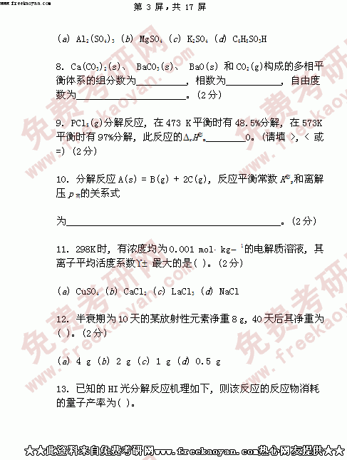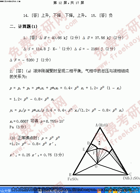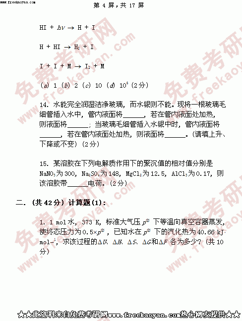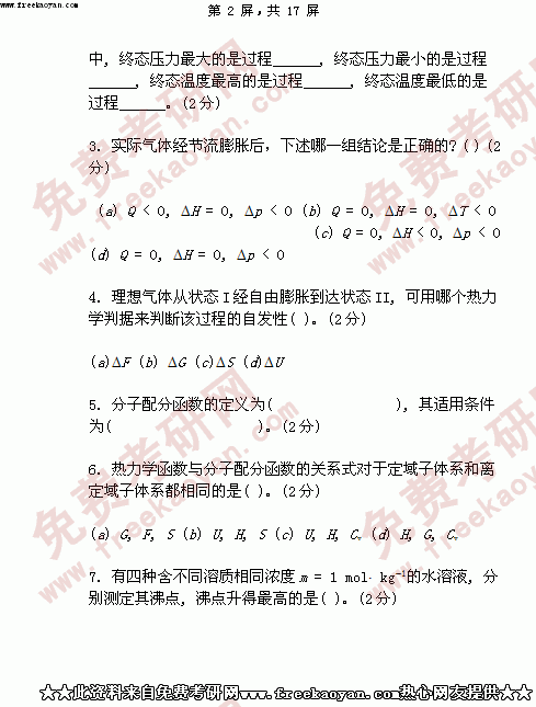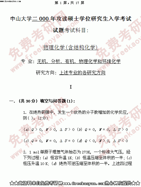 专业课考研经验 本站小编 FreeKaoyan 2018-01-22中山大学2001年考研真题-物理化学(不含结构化学)有答案
