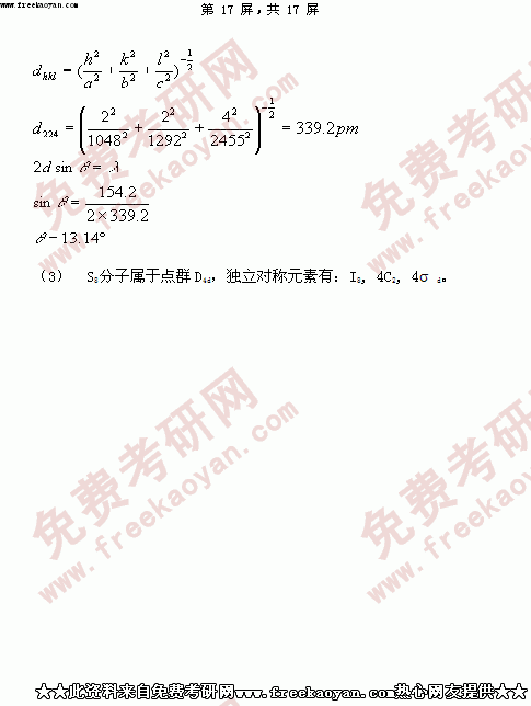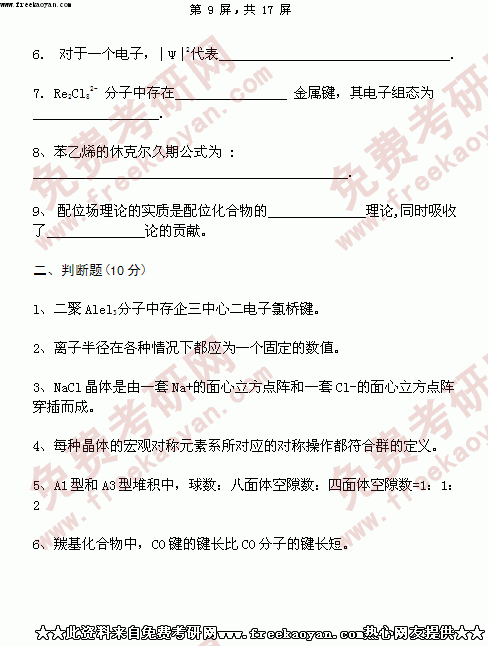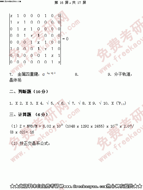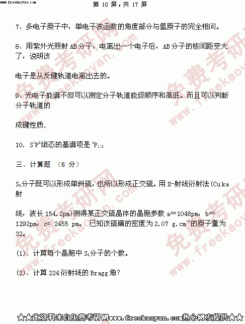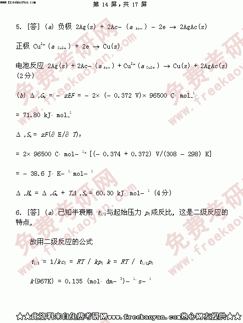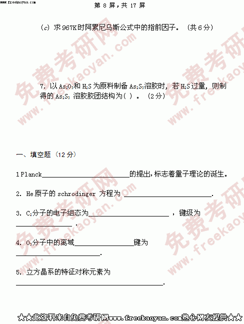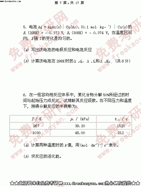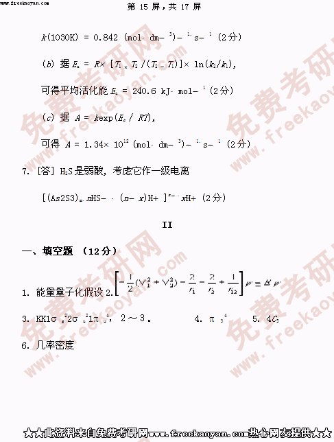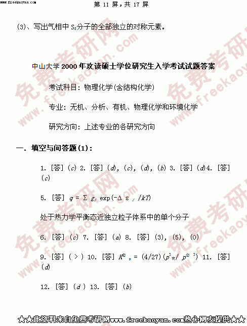 专业课考研经验 本站小编 FreeKaoyan 2018-01-22中山大学2001年考研真题-物理化学(含结构化学)有答案