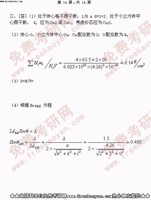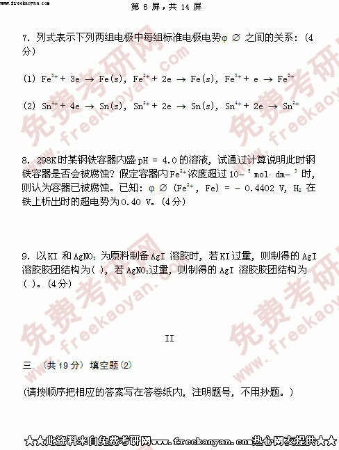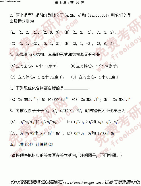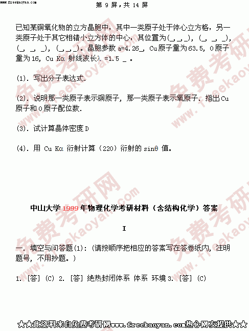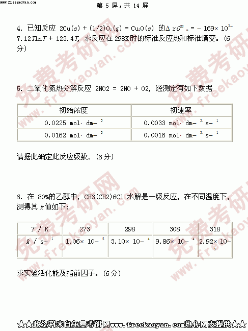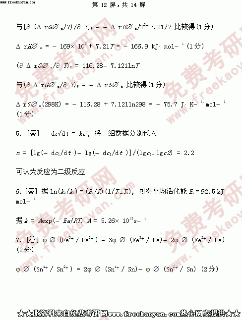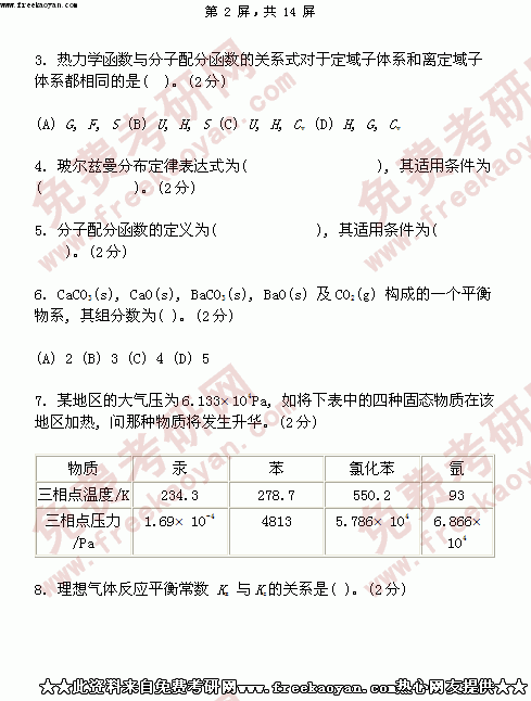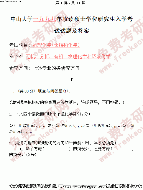 专业课考研经验 本站小编 FreeKaoyan 2018-01-22中山大学2000年考研真题-物理化学(含结构化学)有答案