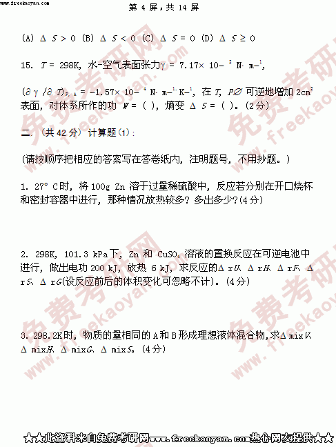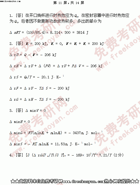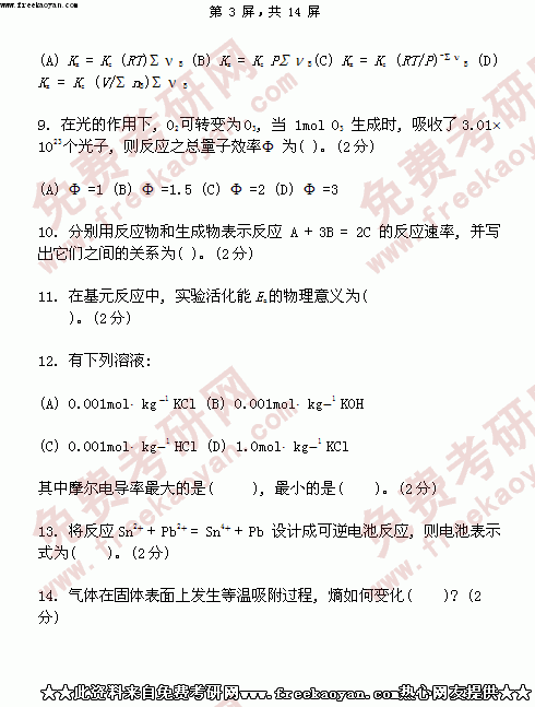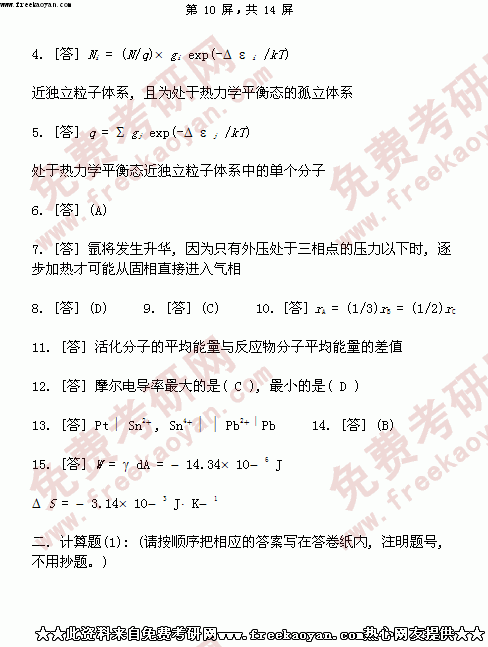 专业课考研经验 本站小编 FreeKaoyan 2018-01-22中山大学2001年考研真题-物理化学(不含结构化学)有答案